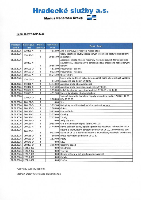 Ceník i otevírací doby sběrných dvorů jsou v příloze.