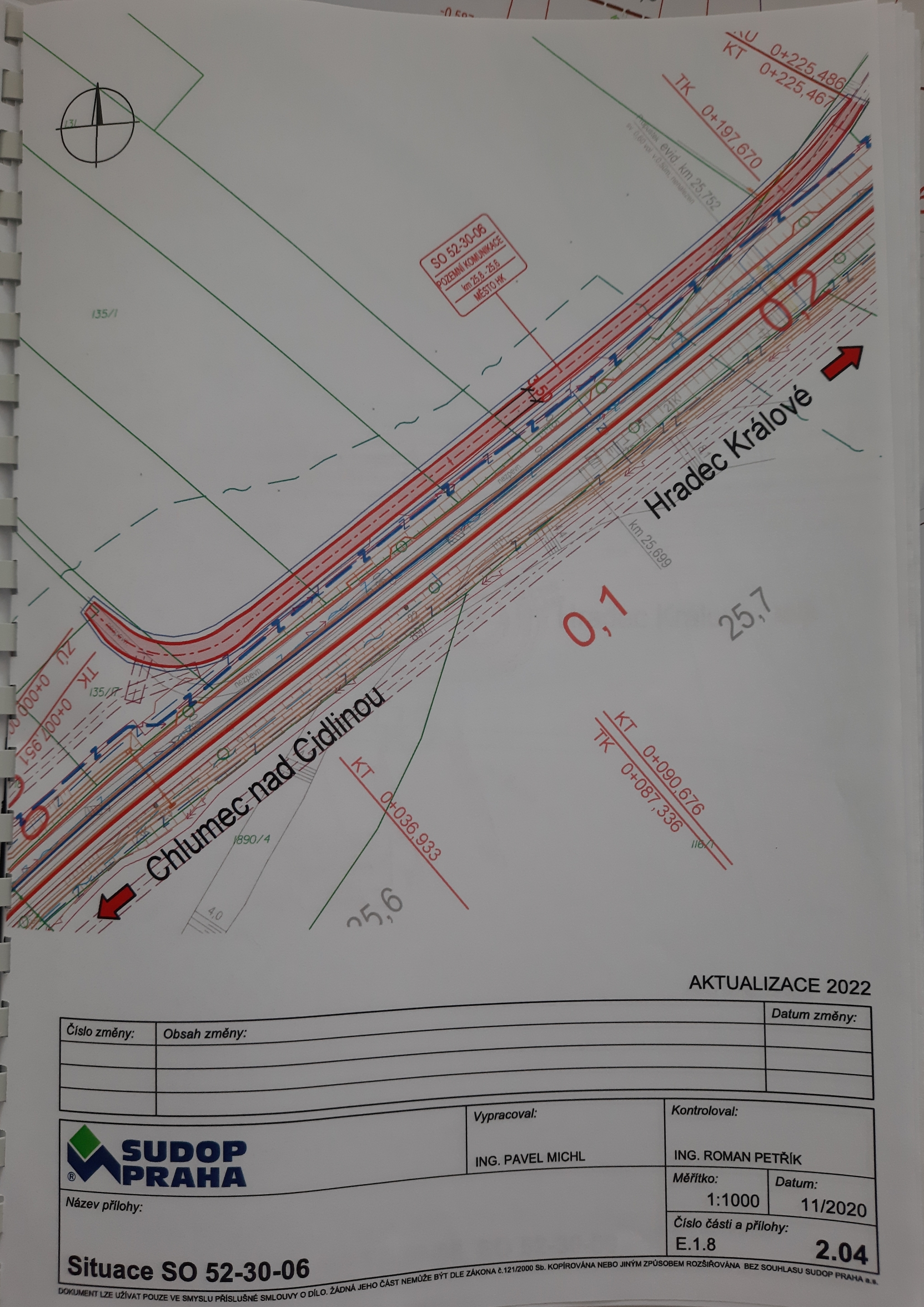 územní rozhodnutí ze dne 16. července 2022, č.j. KUKHK-42065/UP/2022, kterým byla umístěna stavba "Modernizace traťového úseku Chlumec nad Cidlinou - Hradec Králové".
